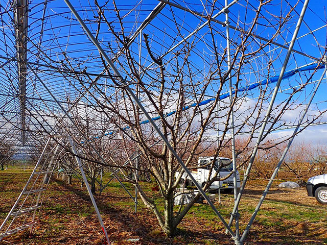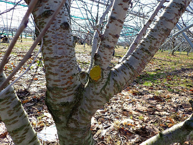 G 剪定後の「佐藤錦」の樹です。剪定前と比べて、枝と枝の重なりが解消し、すっきりしました!