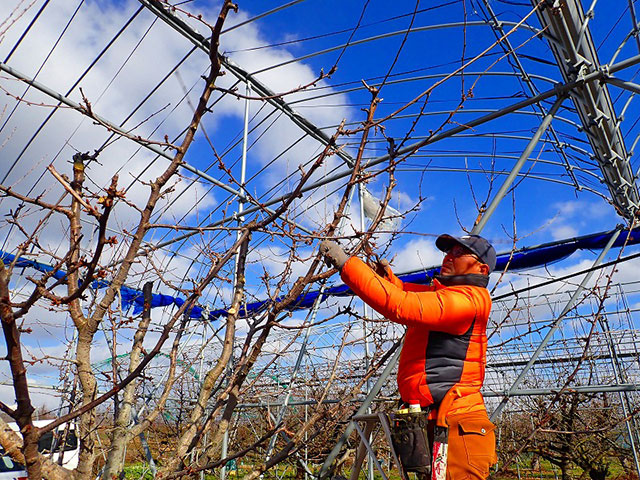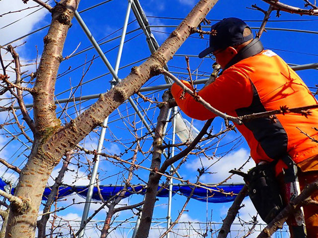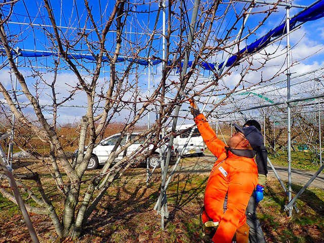 例年1月くらいから本格的に剪定作業を開始するとのことですが、さくらんぼ以外の樹種もあるので、今年は雪がないうちに、急いで作業を進めていきたいと話していました。