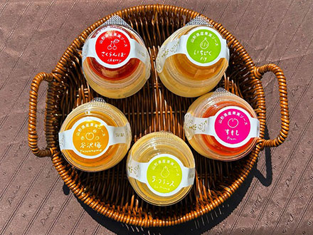 [更新]2025.10.27山形の果物を季節を問わずに味わってほしい、そんな思いから生まれたのが山形果実プリン(冷凍)です。山形県産果物を使った自家製果実ソースはさくらんぼ、谷沢梅、すもも、いちじく、ラ・フランスの5種類です。ほど良い甘さの柔らかプリンにマッチします。冷蔵庫で解凍し、プリンに山形果実ソースをかけてお召し上がりください。